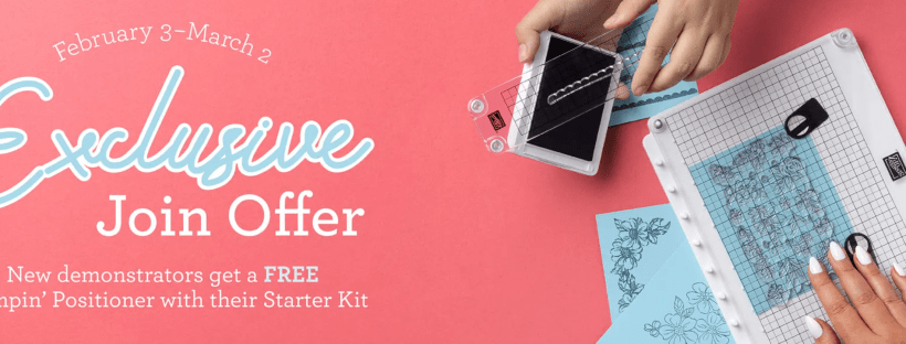 Stampin’ Up! has a new demonstrator offer which starts, Tuesday, February 3rd! Receive a newly designed Stampin’ Positioner Tool when you sign up to be a demonstrator, hopefully on my Super Awesome Stampers Team!