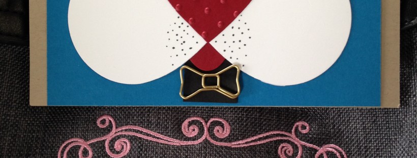 We are on our way to celebrate at my cousin’s bridal shower. My sister snagged the doggy gifts on their registry so Mom thought a doggy card was appropriate. I just happen to have a swap card similar to this one in my card tree so Mom copied that design to come up with this one.