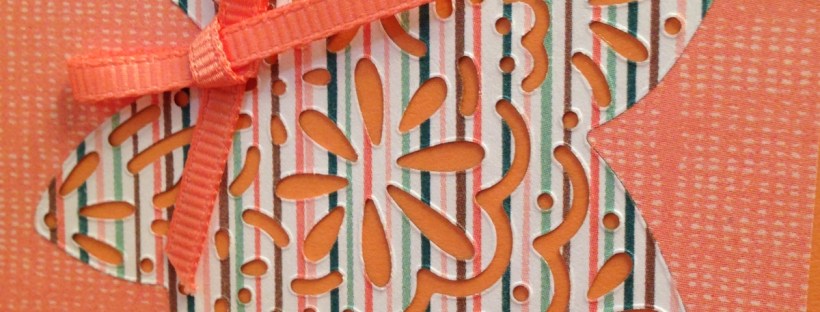 I next highlighted the orange tones by grabbing the negative of a leaf die cut from a different patterned paper. This was backed with grapefruit grove cardstock and accented with grapefruit grove ribbon.