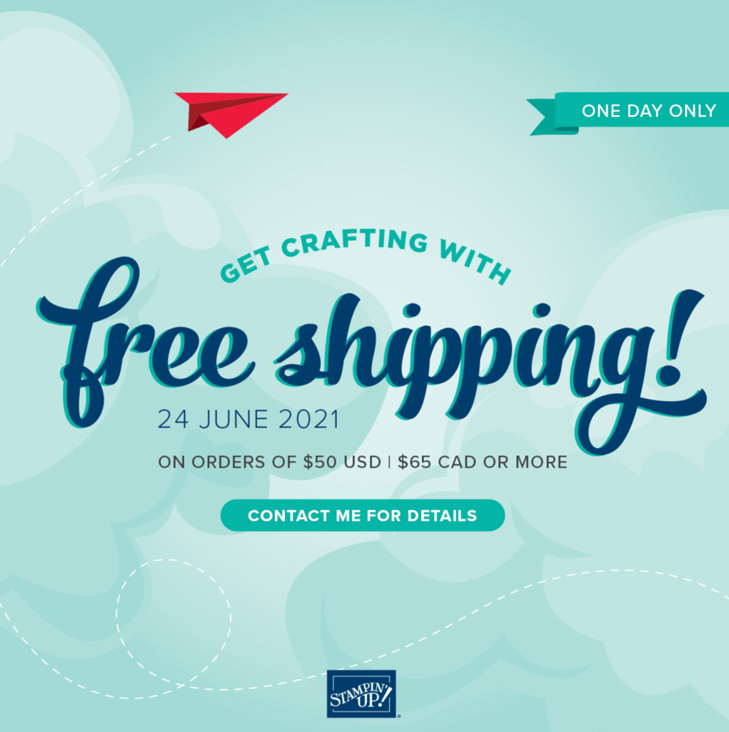 Stampin’ Up! has announced free shipping for orders placed on June 24, 2021!!! Super Sweet especially if your shopping list is long and you have not done anything about that:)