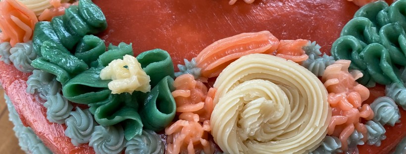 I have always loved frosting on cakes…give me the big flower with lots of edging! I had a Wilton cake decorating set years ago. A busy life and easy access to great Carl’s Cakes was little incentive to learn the craft of cake decorating. BUT, I have been plotting learning this skill with, you guessed it, Youtube videos.