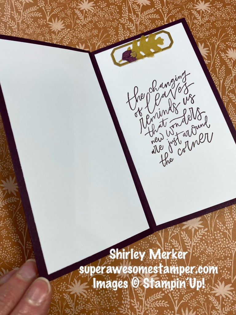 About every other month, global Stampin’ Up! demonstrators gather to a private Facebook group so that we can share demonstrations with our customers. The last time we had an event, I shared the book binder design to create a hand stamped greeting card. Here is my design using the Blackberry Beauty suite.