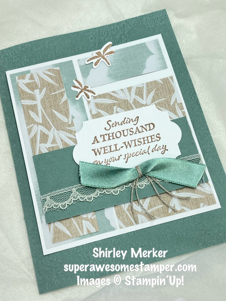 The stamped dragonflies and sentiments are included in the Crane of Fortune stamp set.