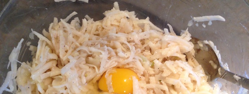 Work quick after addition to the pan starts. So have the rest of the meal ready or enlist your house mates to time the rest of the meal so you can enjoy the hot, crispy potato pancakes with your other dishes.