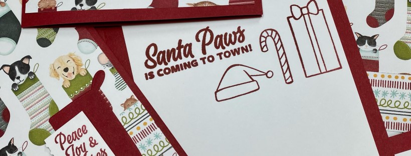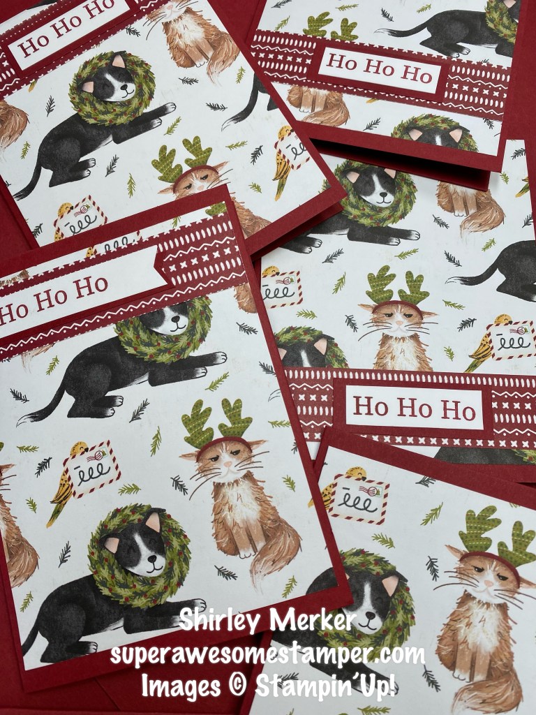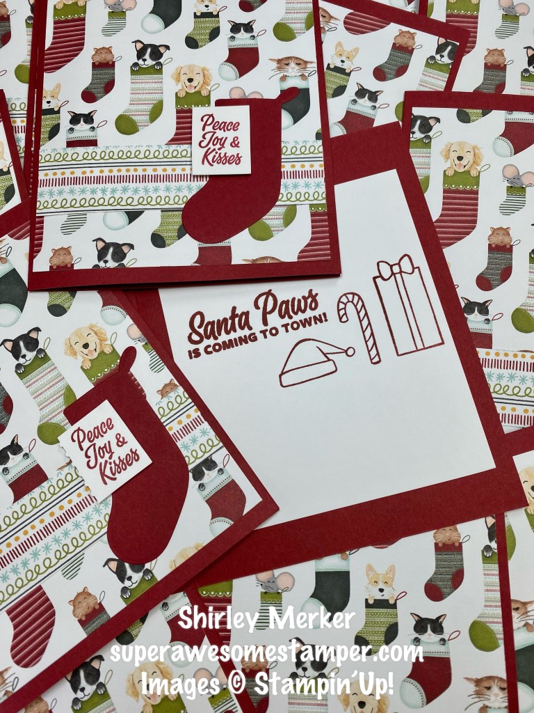 I showcased the Sweet Stockings bundle in the The 12 Days of Christmas and More Paper Crafting Facebook event. The cards below were simple cards because I just could not cover up all the fun pet prints!
