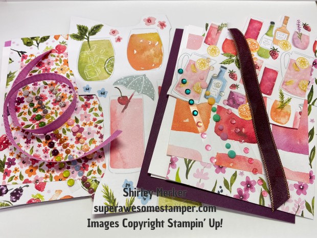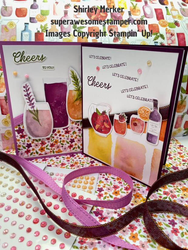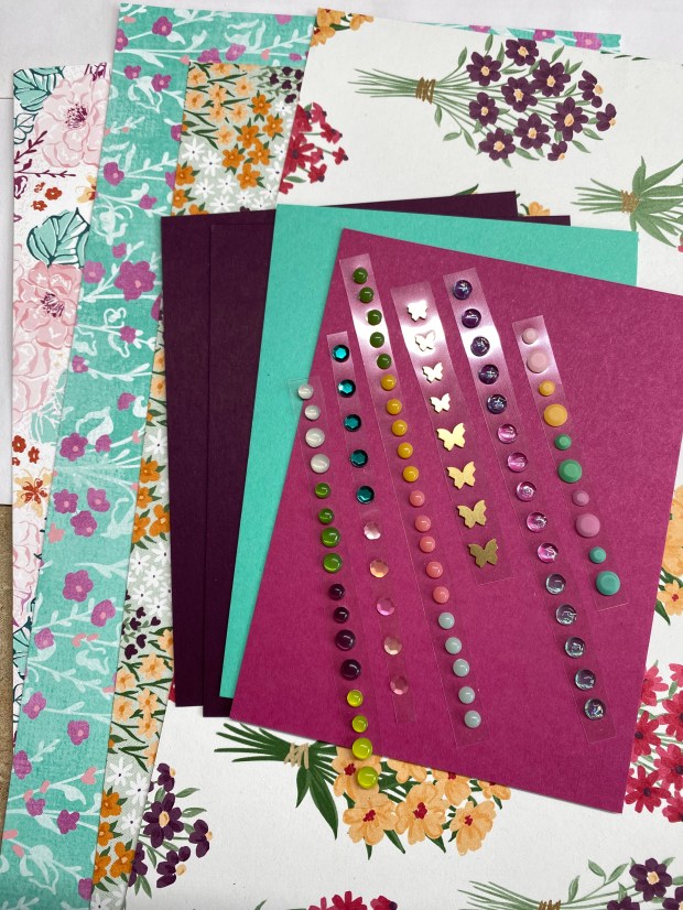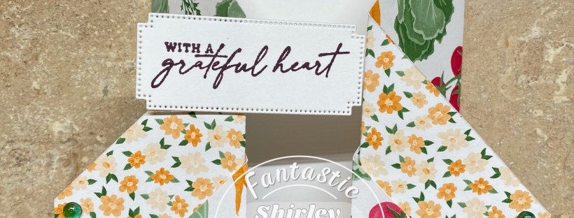 Kits feature supplies as shown below with supplies for 3 cards. Three pattern paper designs for the pleats, 3 festive floral bouquet, strip of embellishments and coordinating cardstock. Please note that Basic White inserts and scrap paper to stamp sentiments on are not included because supplies are very close to the 2 ounce mailing limit!