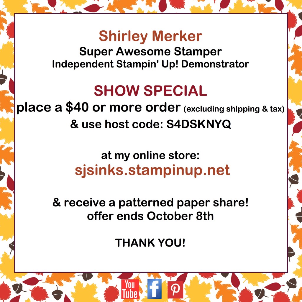 I also share Facebook Live how to videos on my page. Search for Super Awesome Stamper Shirley Merker on Facebook, like and turn on notifications.