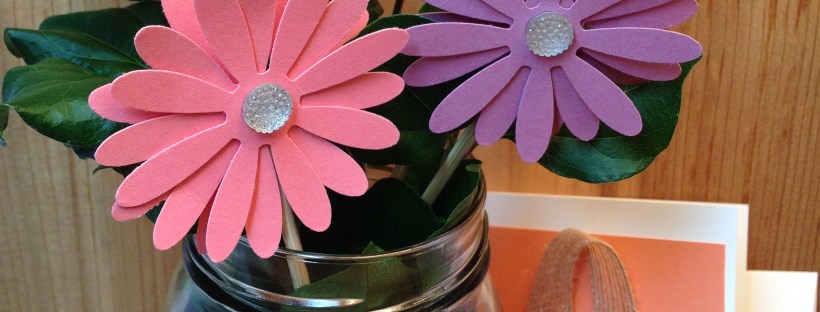 The designs are for the August Card Buffet and Daisy Jar class.  The Daisy Jar is below. Note that the foliage is fresh cut from the lilacs that had a few flowers opening!