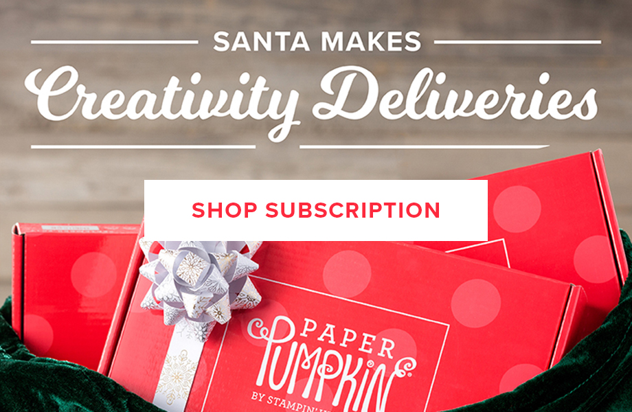 Click here or the subscription graphic above to place your Paper Pumpkin Subscription order using host code S3399KHQ. Remove the host code if your order exceeds $150 (excluding shipping and tax) but remain shopping with me so you can redeem all the host rewards your self. Once you arrive at my online store, click Shop Products/Kits Paper Pumpkin/Prepaid Subscriptions. Then select the appropriate subscription and add to your shopping cart.