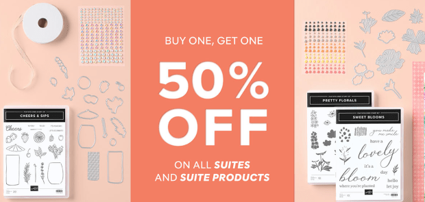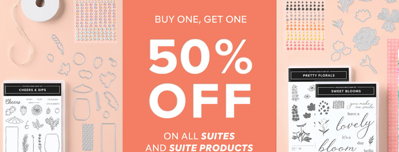 • When you shop the sale, the 50% off discount will apply to the lower-priced item (for example, if you buy a suite collection and a stamp set from a suite, the suite would be full price, and the stamp set would be 50% off).