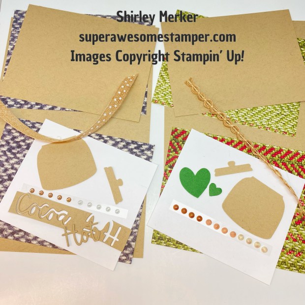 Please note you need to add your stamp sets to create the pattern on the card stock and jar images. We are not allowed to include stamped images in kits. I used the following supplies to complete my kits which you can purchase through my online Stampin’ Up! store by clicking this link.