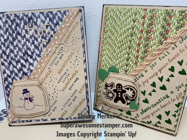 Need for Tweed DSP (Designer Series Paper) inspired this edition of Jar Punch Kits in the Mail featuring Jar of Joy and Sweet Jar stamp sets. Oh…and I love a good Crumb Cake colored design 😉