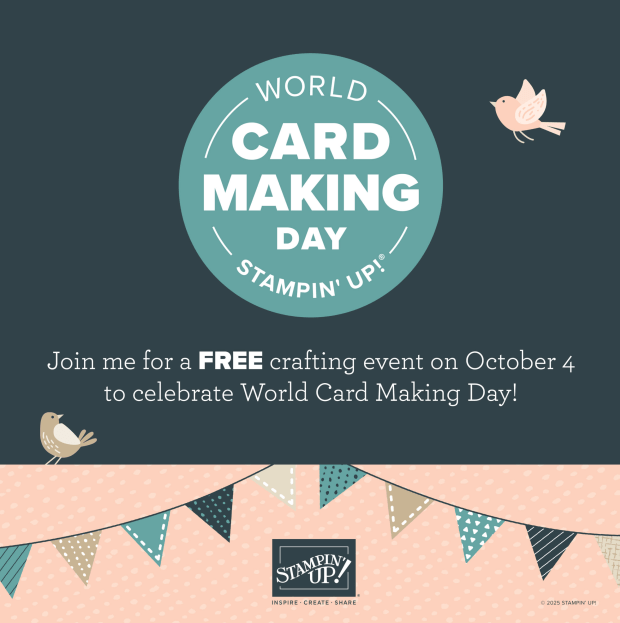 Don’t miss out on this opportunity to connect with friends who love crafting. Join us for this amazing event by registering here: https://mailchi.mp/stampinup/worldcardmakingday You will receive a thank you gift after the event is over but only if you use this link to register for the event. If you can’t watch the demonstration live, it will be available for replay shortly after the event is over.