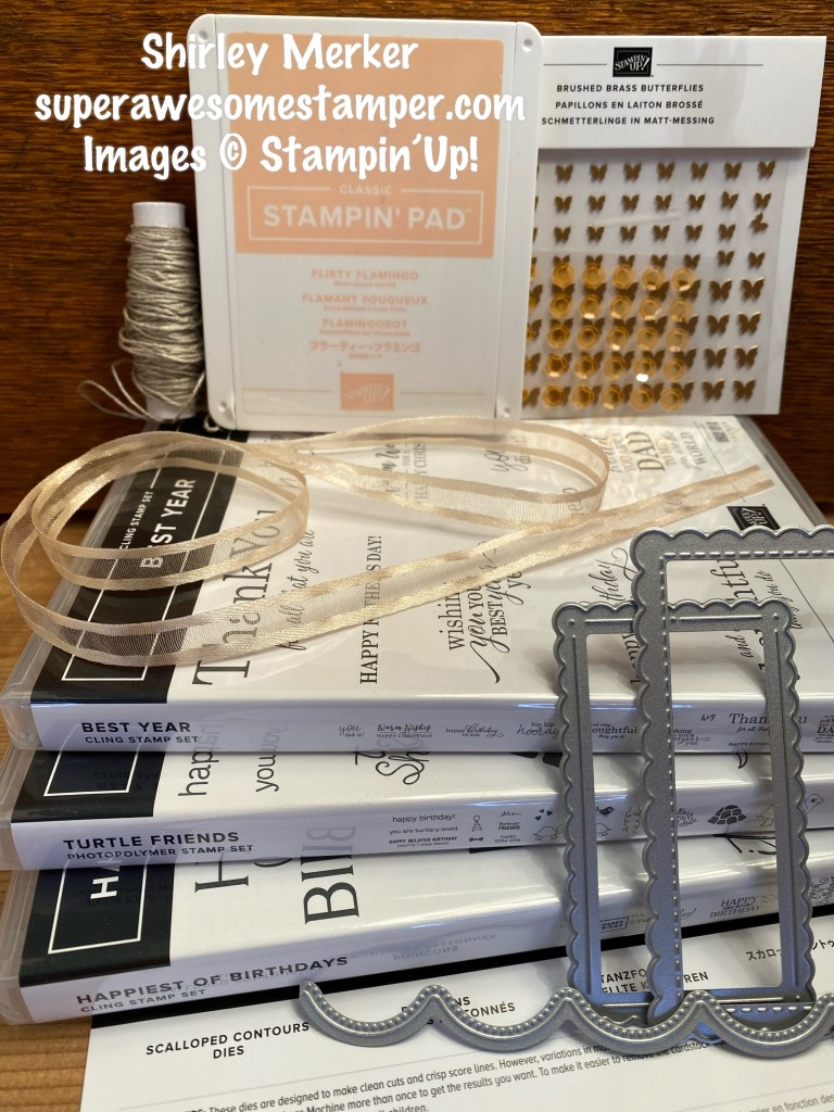 The Turtle Friends stamp set and coordinating Turtle punch create fun and quick cards. If you want a quirky birthday card, this it! I tried adding bling but the Hand Penned pattern paper is so busy, it did not need it.