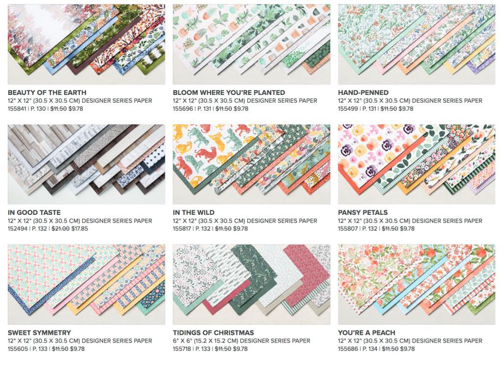 There is no limit to the number of packages that may be purchased during this promotion. Only select Designer Series Papers are available at a 15% discount during this promotion as shown in the photo above. Orders must be closed during the promotion period for the 15% discount to apply. Designer Series Paper ordered as part of a Starter Kit when you join my Super Awesome Stampers Team or with Stampin’ Rewards qualify for the 15% discount.